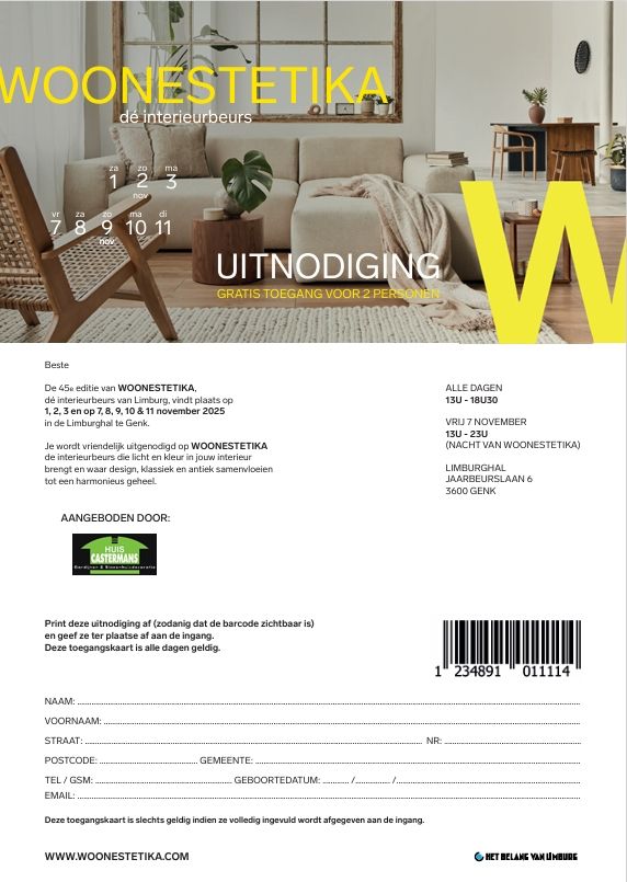 Wij doen mee aan de Woonestetika beurs in Genk en nodigen je graag uit om ons te bezoeken! Ontdek onze nieuwste interieurideeën en krijg persoonlijk advies van ons team.